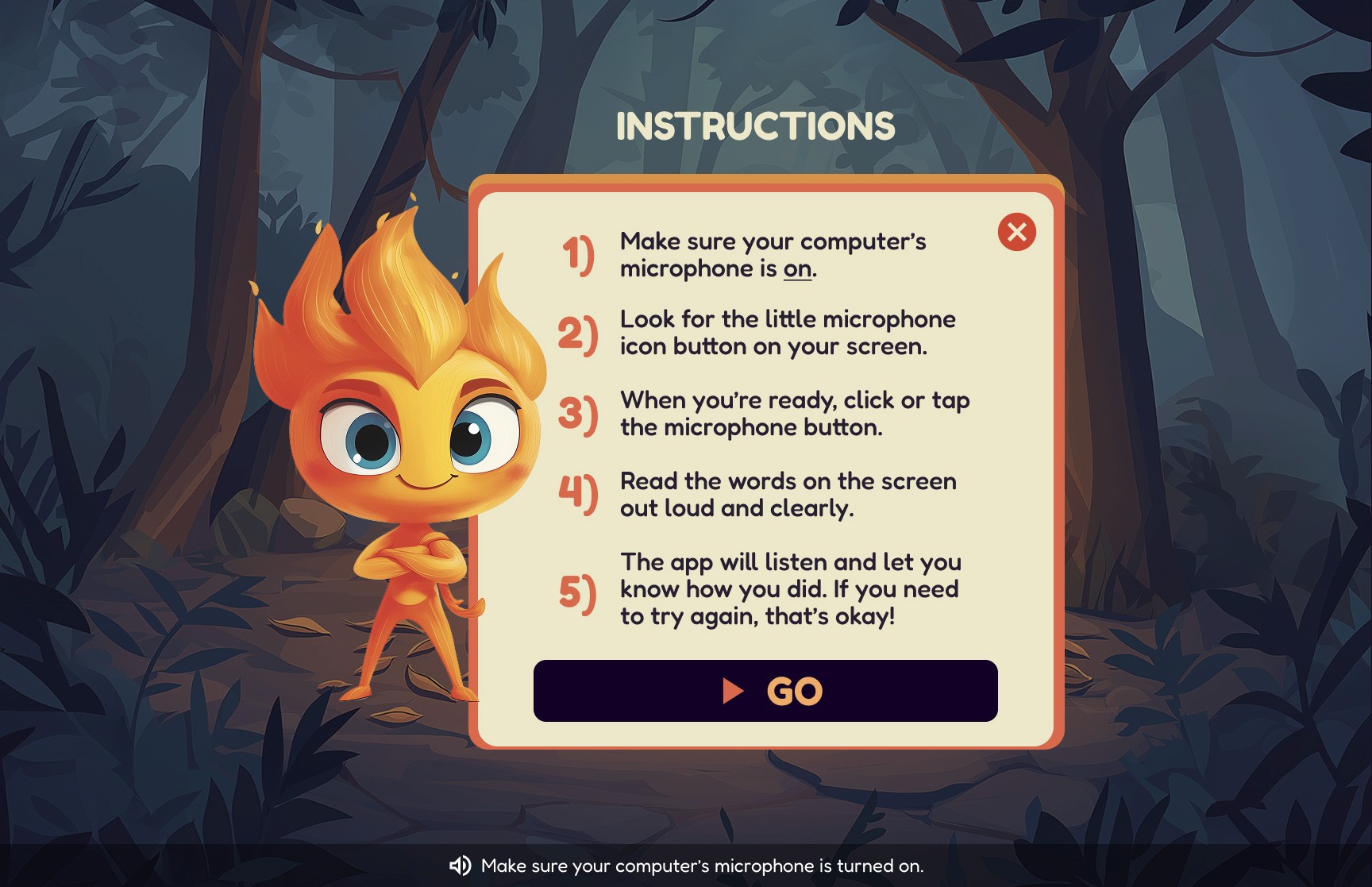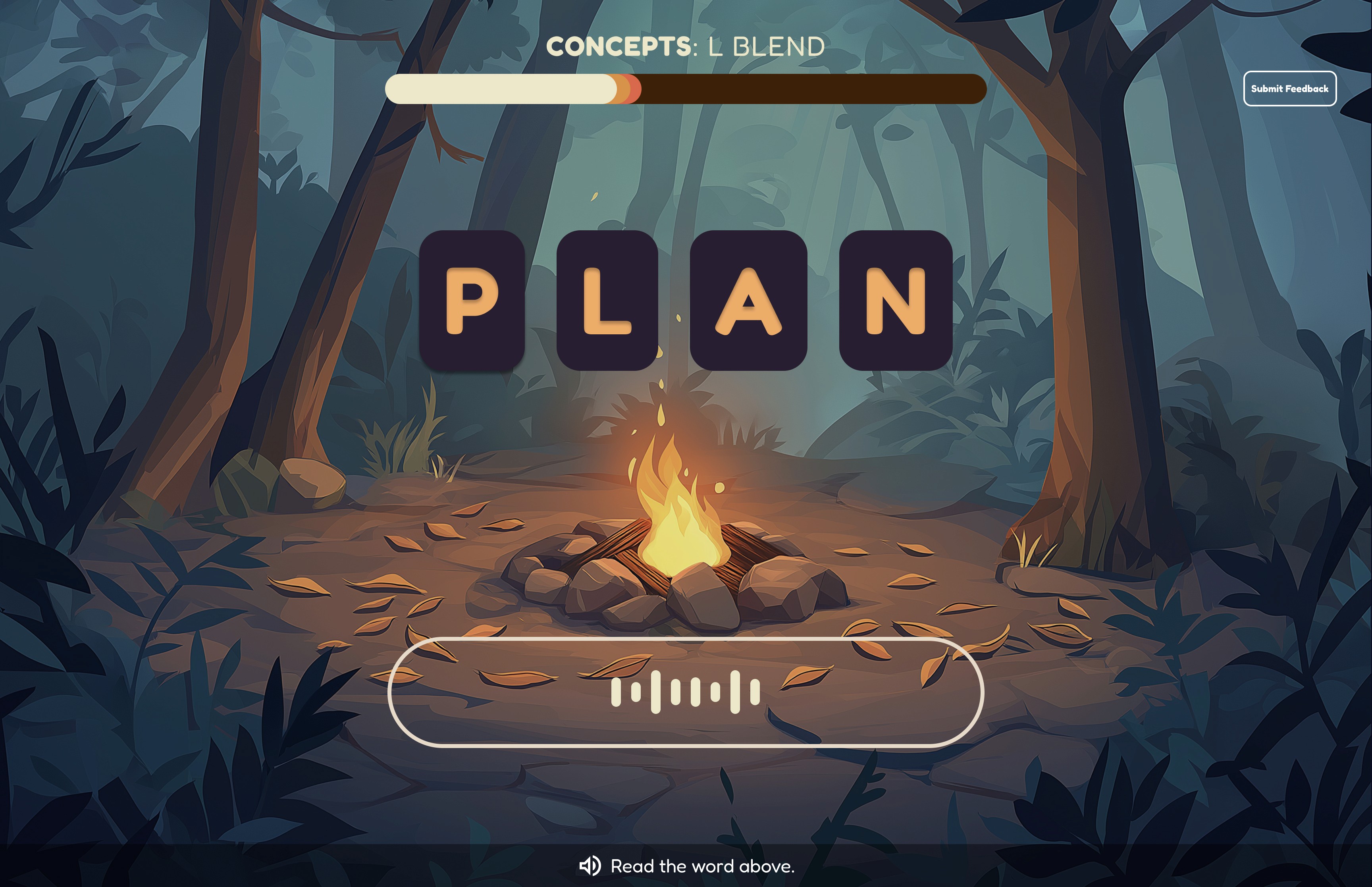 The microphone button invites students to read words aloud