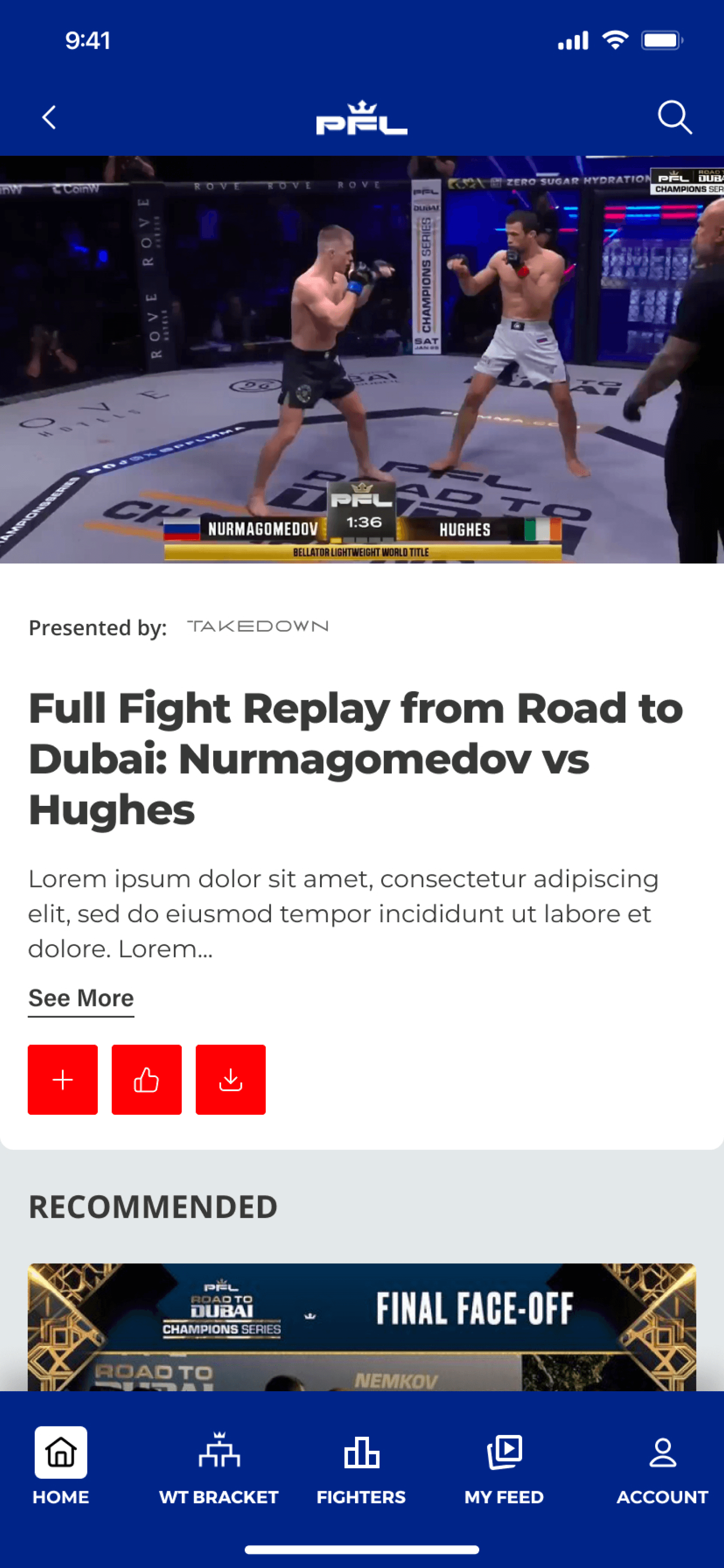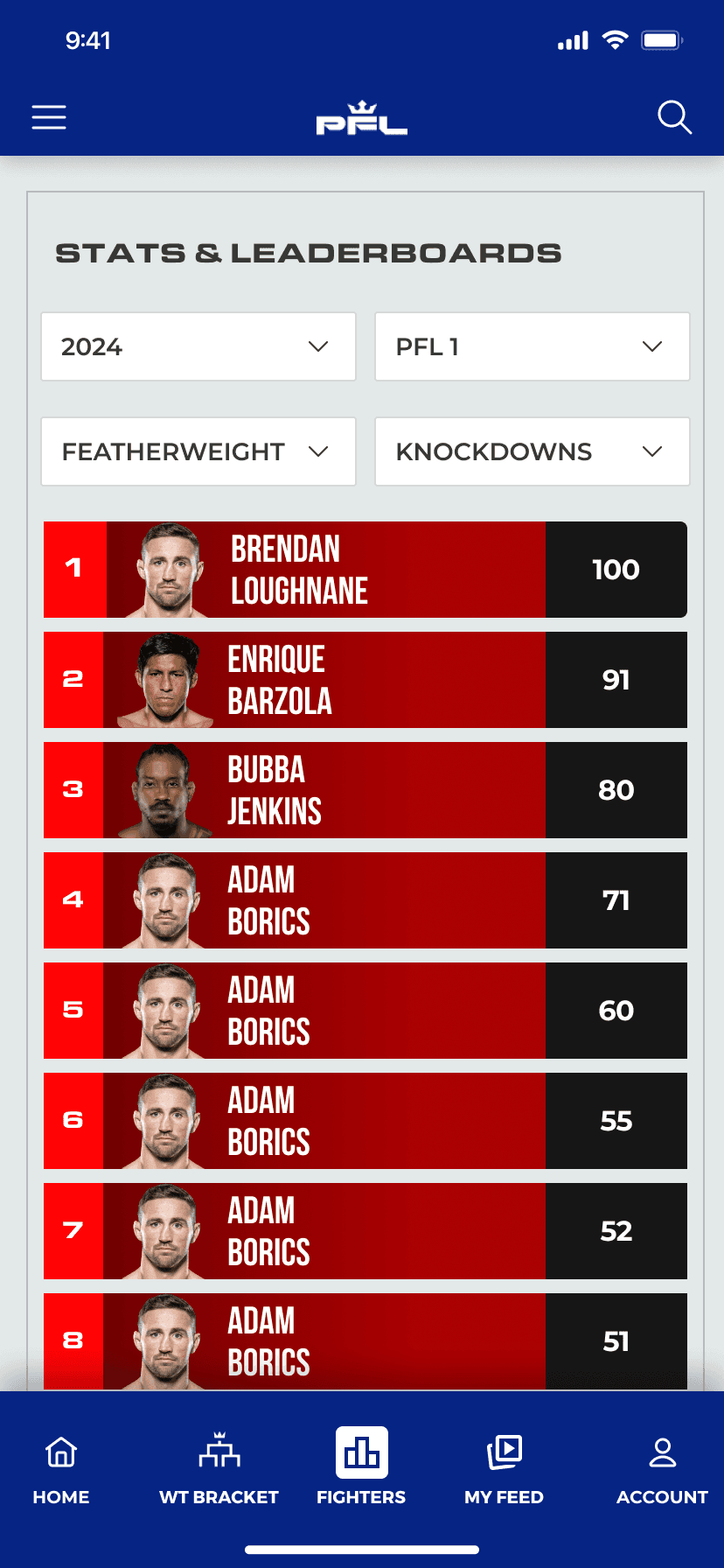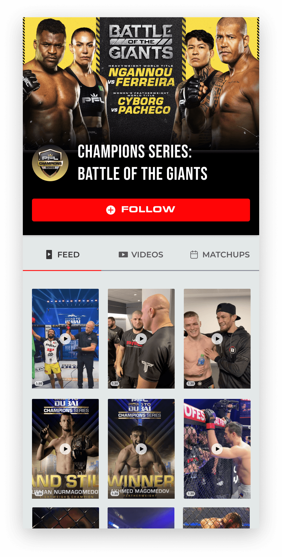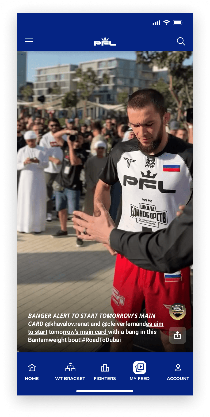 A one-stop destination for fans to experience the entire PFL universe — live fights, tune-in information, review / preview content, stats / schedules, and fighter information — all in one seamless, streamlined platform